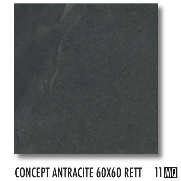 Concept Antracite gres porculan 60×60 cm s povećanom debljinom od 2cm donosi moderan industrijski izgled kamena s izuzetnom otpornošću. Retificirani rubovi omogućuju fugu od samo 2mm za dojam glatke i ujednačene površine.